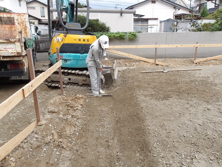 基礎工事 砕石敷き込み 那珂川市リフォームから新築へ 注文住宅 福建住宅株式会社