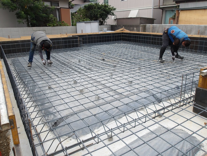 基礎内部に鉄筋を規則正しく施工する配筋工事です。