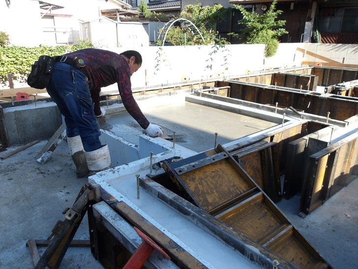 コンクリート増し打ち後、金ゴテ仕上げです。