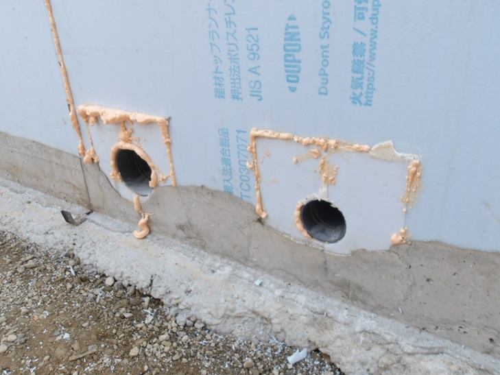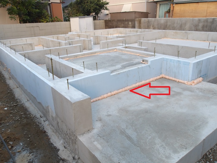 それは、基礎コンクリートと断熱材の間に万が一隙間があった場合でもシロアリが家の中に侵入しない為です。