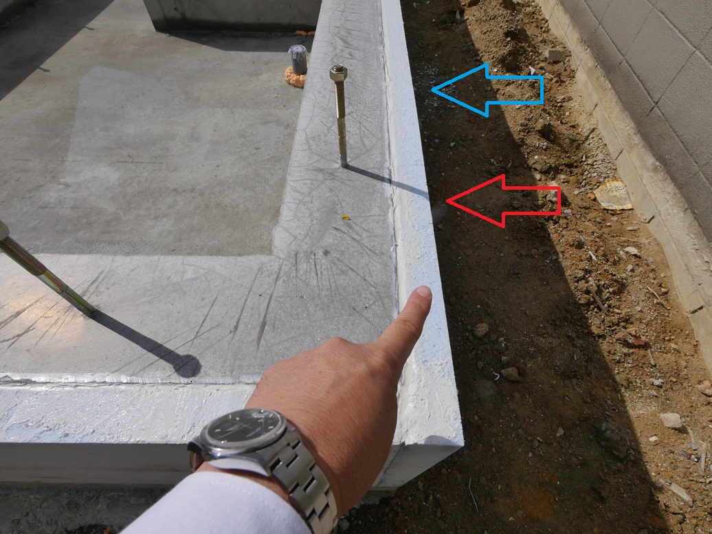 私が指さしている部分が基礎コンクリートです。