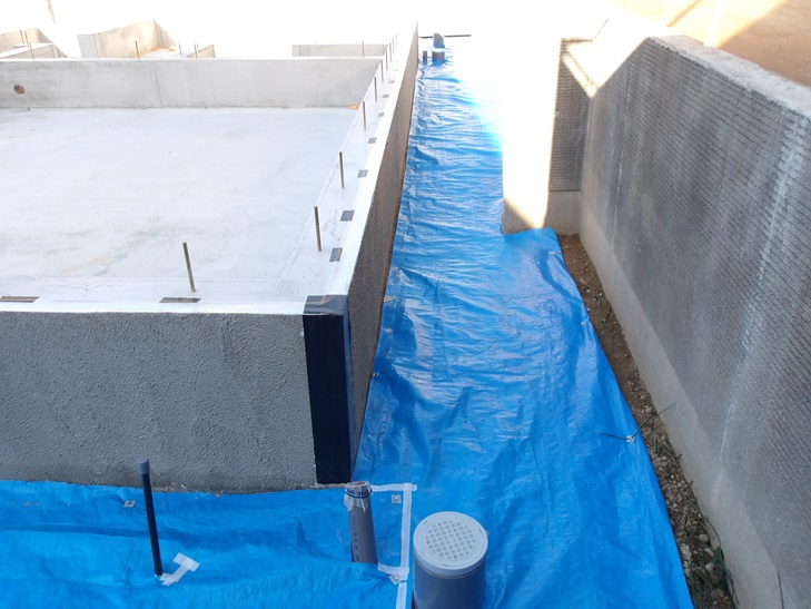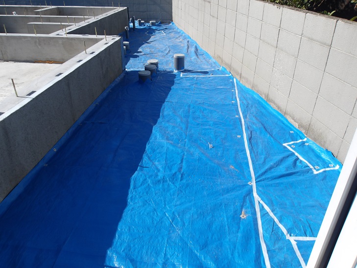 敷地にブルーシートを張ることで、雨に日にぬかるむことがなくなり、木くずや釘などのお掃除がしやすくなり、また雑草も生えません。