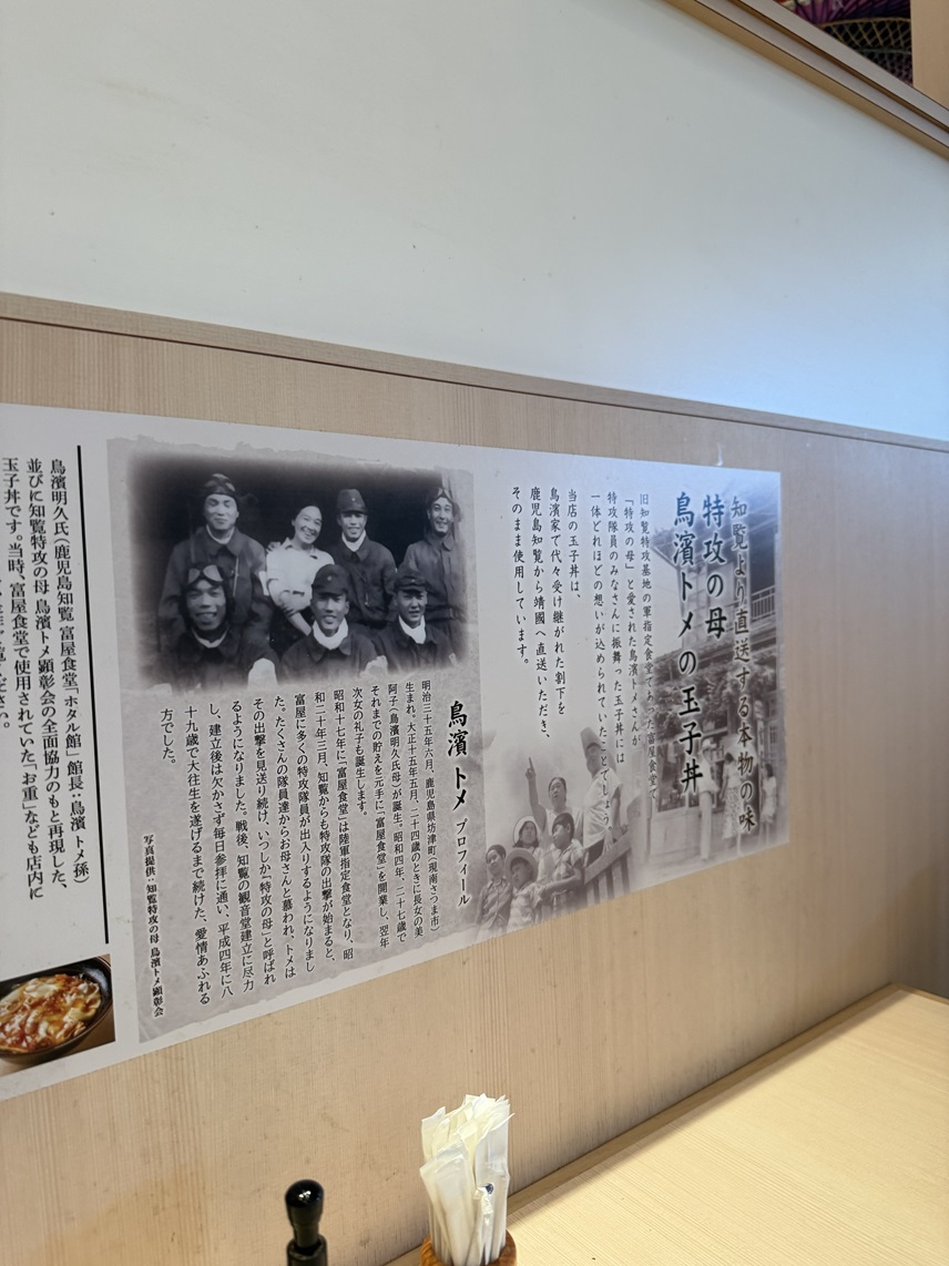 知覧の冨屋食堂の味が、特攻で旅立つ先人たちも食べたであろう玉子丼が食べれるのです。