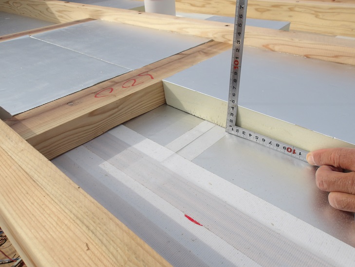 写真は2層目のキューワンボード断熱材の厚さが分かるように撮影しました。