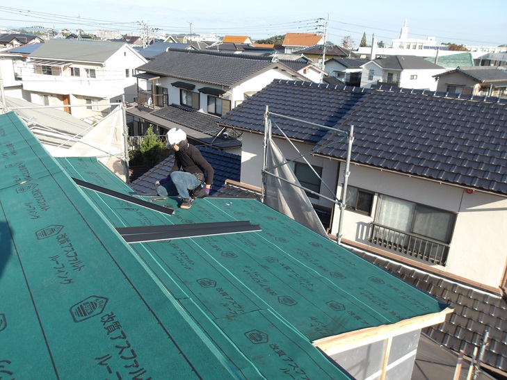 屋根工事 防水ルーフィング シングル葺き 那珂川市リフォームから新築へ 注文住宅
