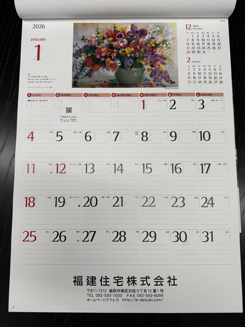 2026年 カレンダー 毎年ご好評のカレンダーできました! 福建住宅株式会社