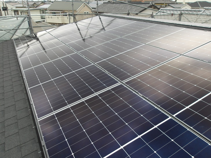 太陽光発電パネル パネル設置完了 那珂川市リフォームから新築へ 電気代を安くするため