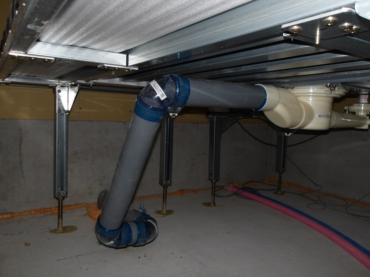 排水のダクトを基礎の排水管と繋ぎ込みします。