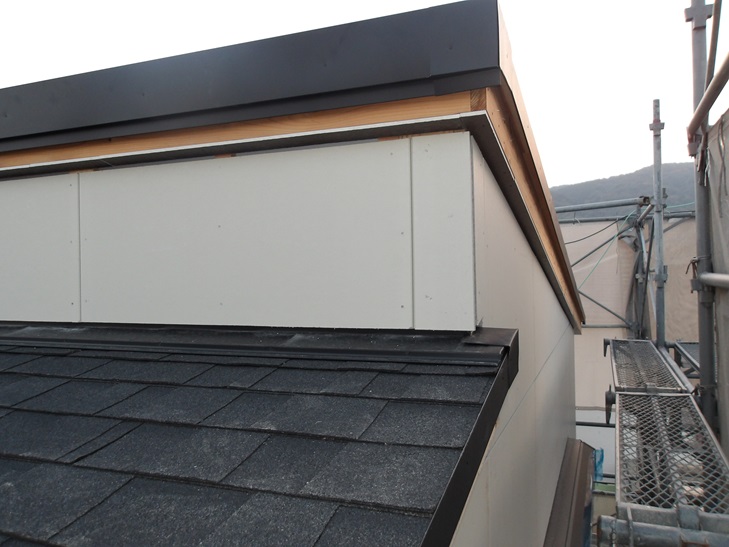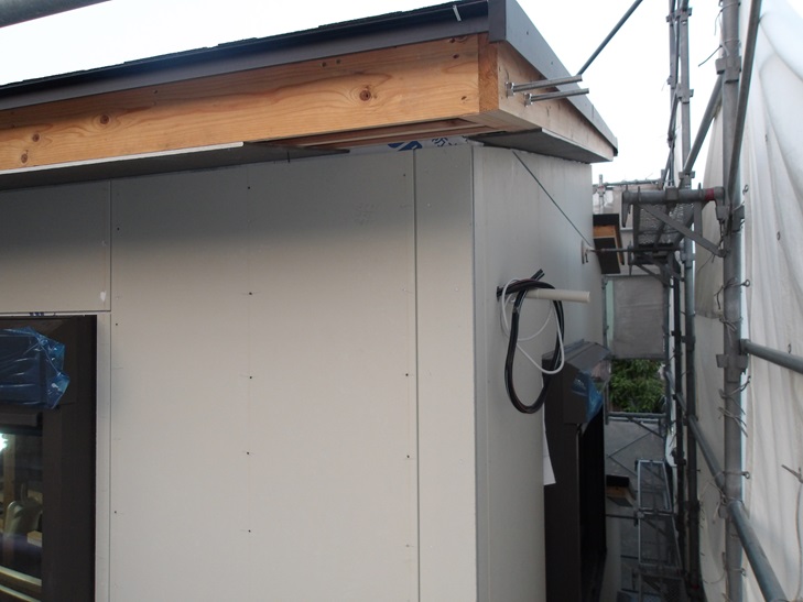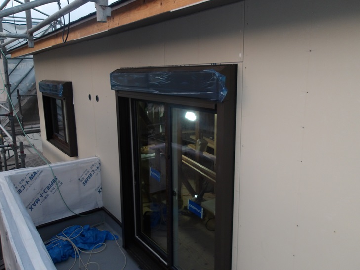 外壁工事 タイル張り仕上げのための下地サイディング 那珂川市リフォームから新築へ
