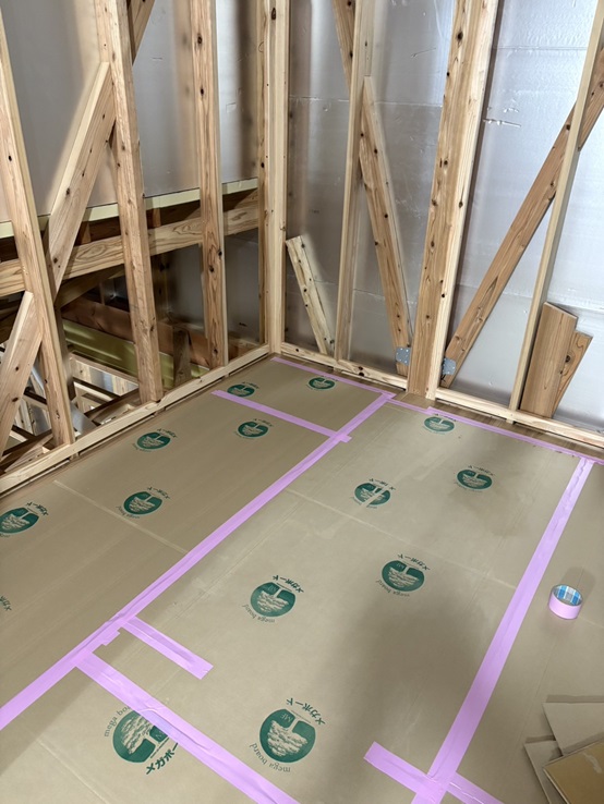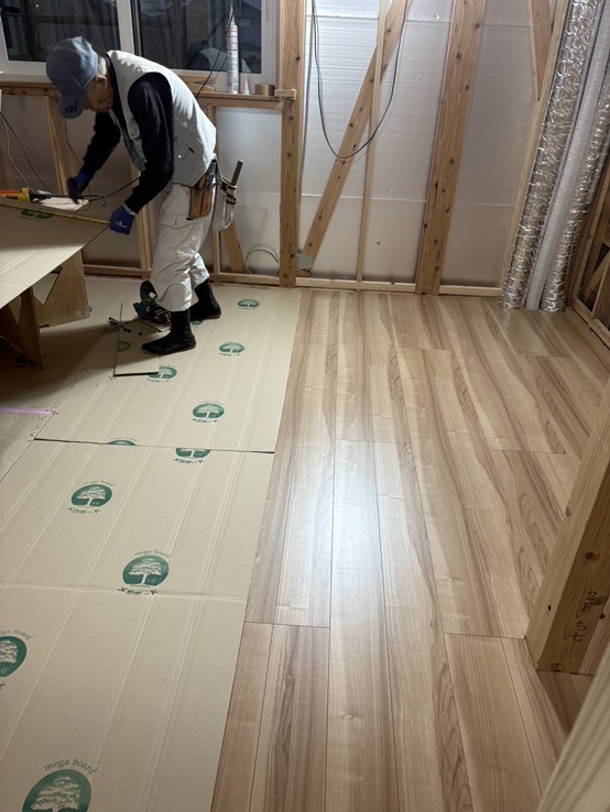 床張り開始 養生 那珂川市リフォームから新築へ 注文住宅 福建住宅株式会社