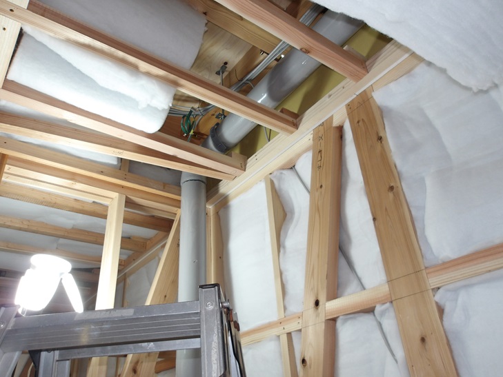 断熱材としても使われていますが、この家では防音材、吸音材として他の部屋に音がなるだけ漏れないようにと施工しています。