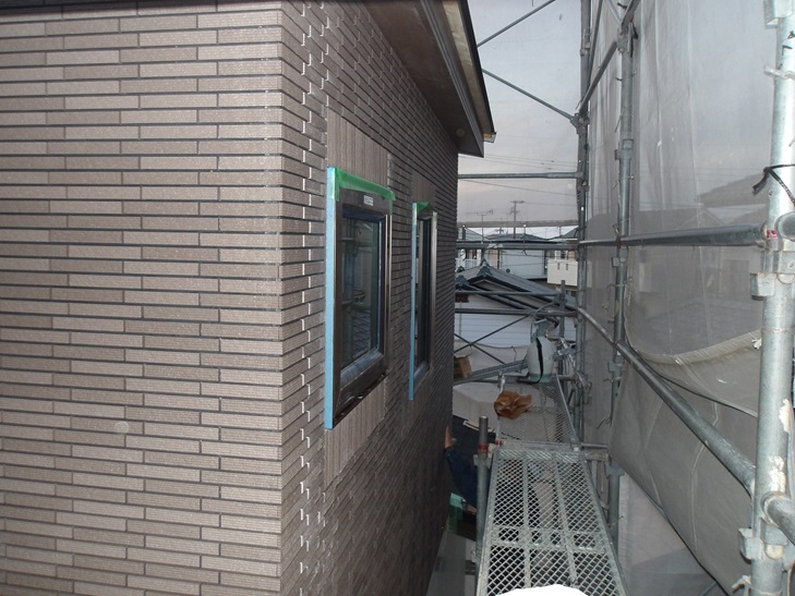 専用の粘土を高温で焼き上げてつくった磁器タイルを専用のボンドで施工するタイル張り工事です。