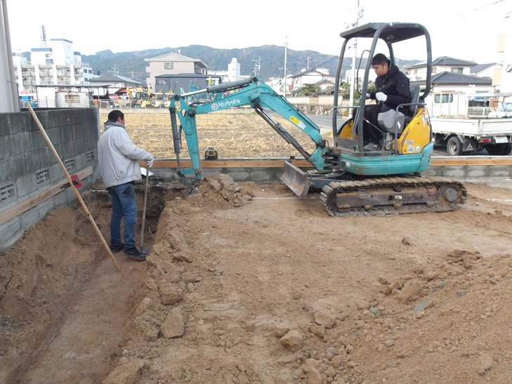 基礎工事 新築工事開始です 床掘り 那珂川市つながる家 注文住宅 外断熱の家 福建住宅株式会社