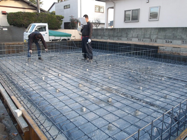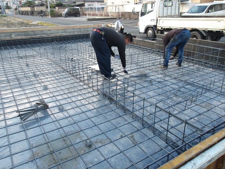 基礎内部に施工する鉄筋工事のことを配筋工事と呼んでいます。