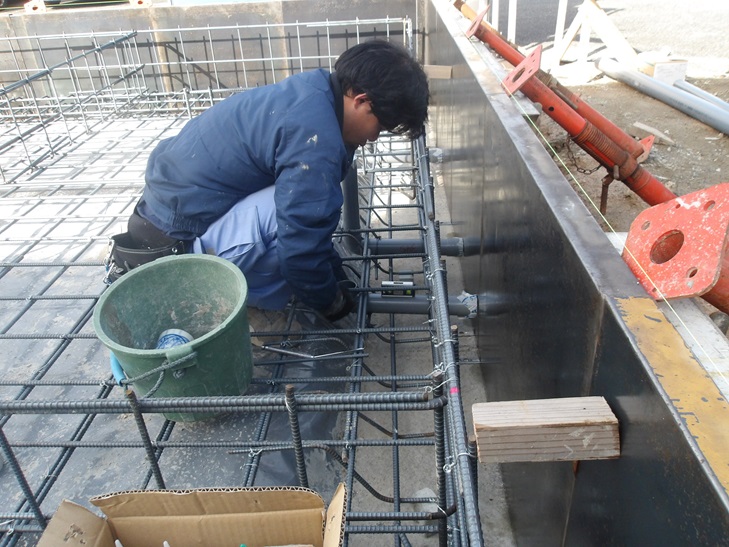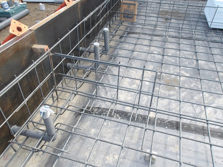 基礎配筋工事が終わると直ぐにコンクリート打設工事を行うので設備業者さんにはピンポイントでいつも工事をお願いしています。