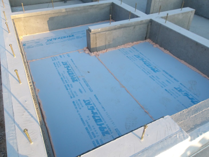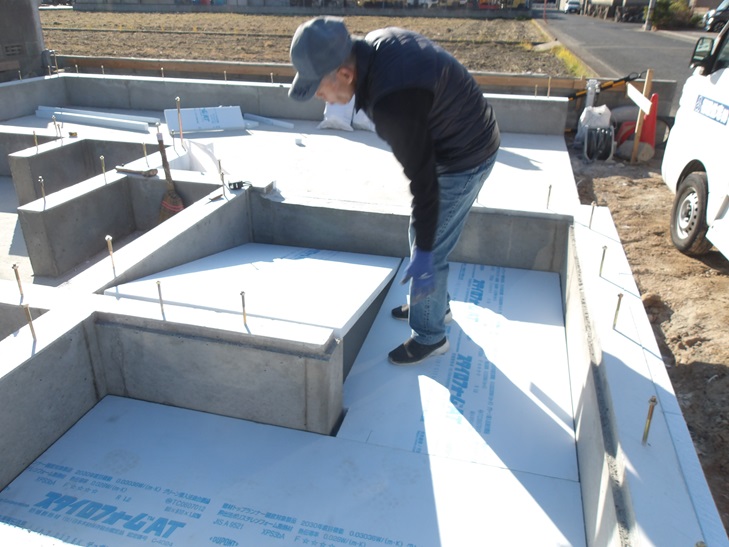 基礎の断熱材を基礎コンクリートの天端に合わせてカットしました。