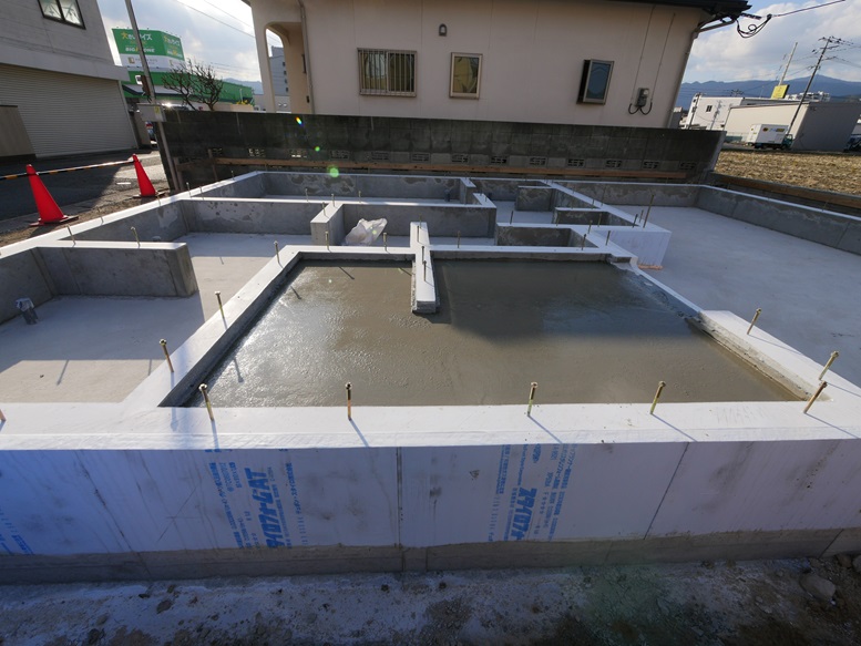 コンクリートで見えなくなりましたが断熱材の上にコンクリートを施工しました。