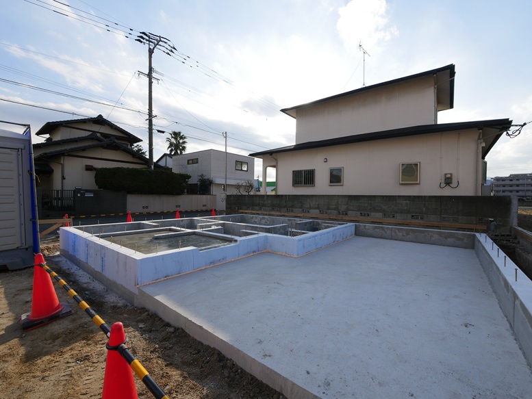 基礎工事 玄関コンクリート増し打ち 住み心地いい家は外断熱の基礎 那珂川市つながる家
