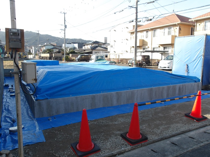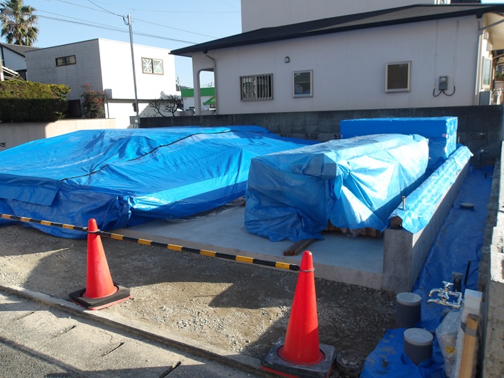 上棟準備 木材搬入 シート養生 那珂川市つながる家 注文住宅 外断熱工法