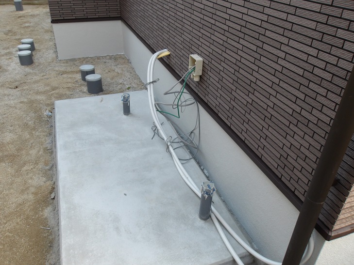 エコキュート(ヒートポンプ式電気温水器)を設置前に基礎仕上げ塗装完了です。