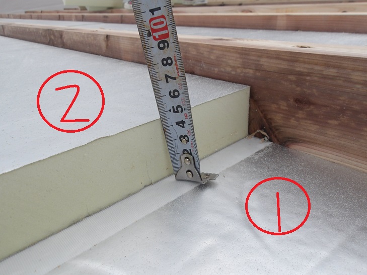 屋根の断熱材は、45mmのアキレス製キューワンボード断熱材が2重に施工されています。