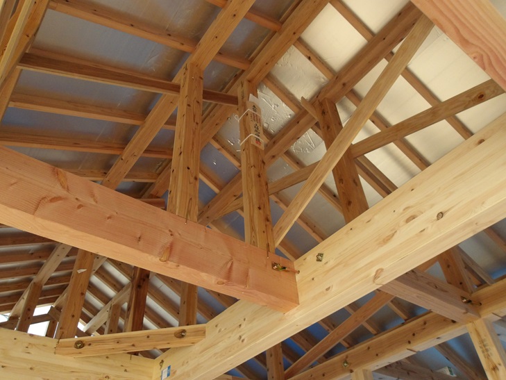 木造住宅の大工工事中は、木がこのように見えて香りがたまらなく良いんです。