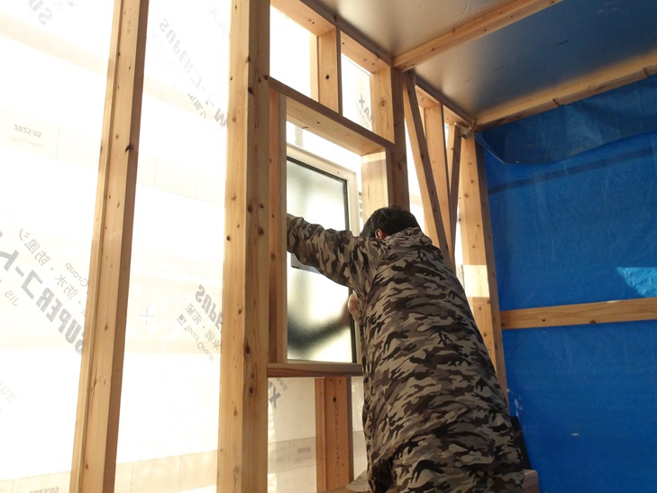 大工工事は、ビルトインガレージの窓の取り付けです。