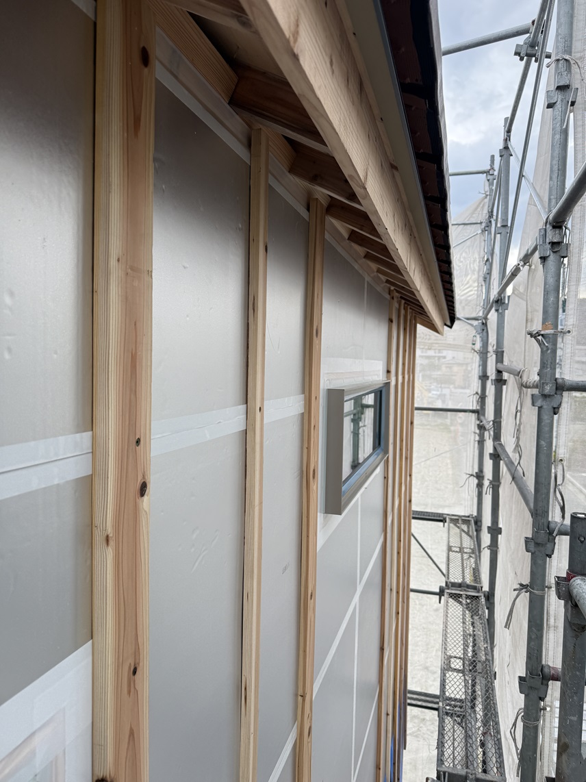 外断熱工事の後の通気胴縁工事