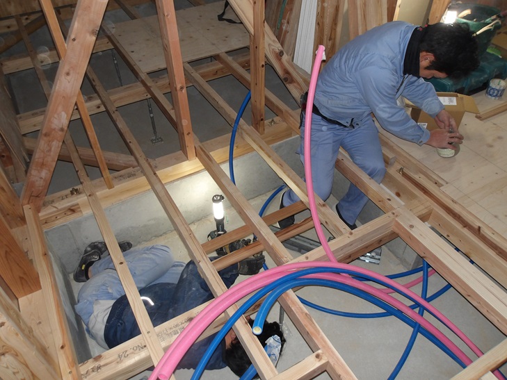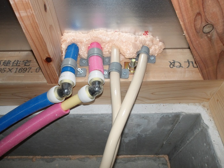 設備配管工事 給水 排水 那珂川市つながる家 注文住宅 外断熱工法 福建住宅株式会社