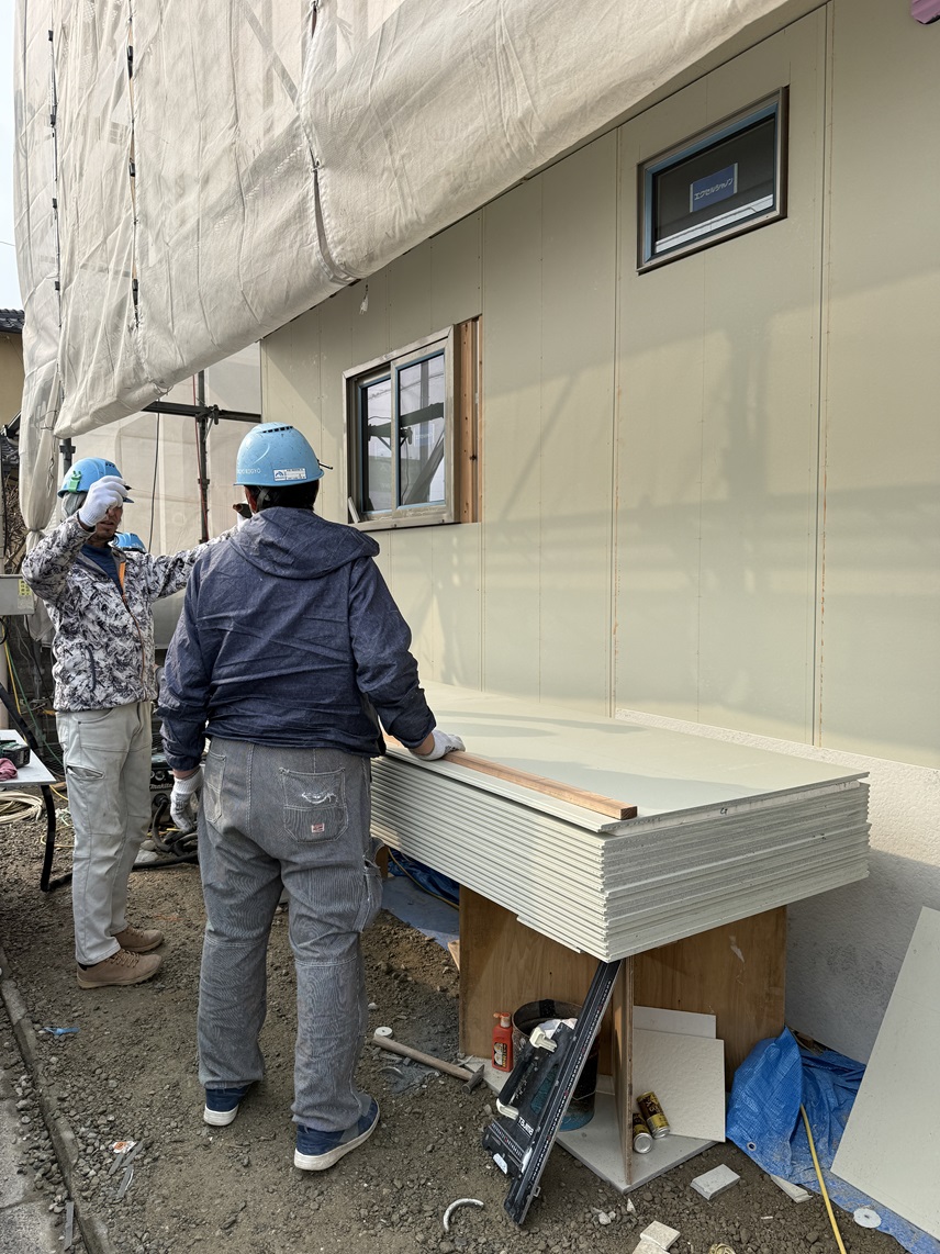 強さと美しさ 外壁工事 タイル張り仕上げ 下地サイディング施工 那珂川市つながる家 注文住宅
