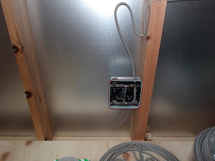 お客様と現場でお打ち合わせした最終の位置にスイッチやリモコンなどを取り付けるためのボックスを設置します。