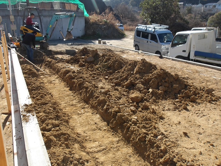 ソトダン白水ヶ丘 基礎工事 床掘り 砕石敷き込み 住み心地いい建売住宅 外断熱工法