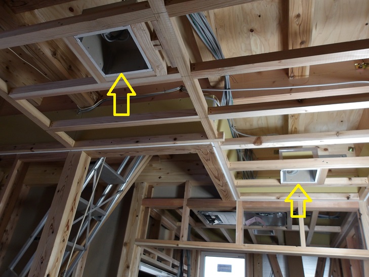 省令準耐火 火災保険料が安い ダウンライト防火カバー 那珂川市つながる家 大工工事中 外断熱工法