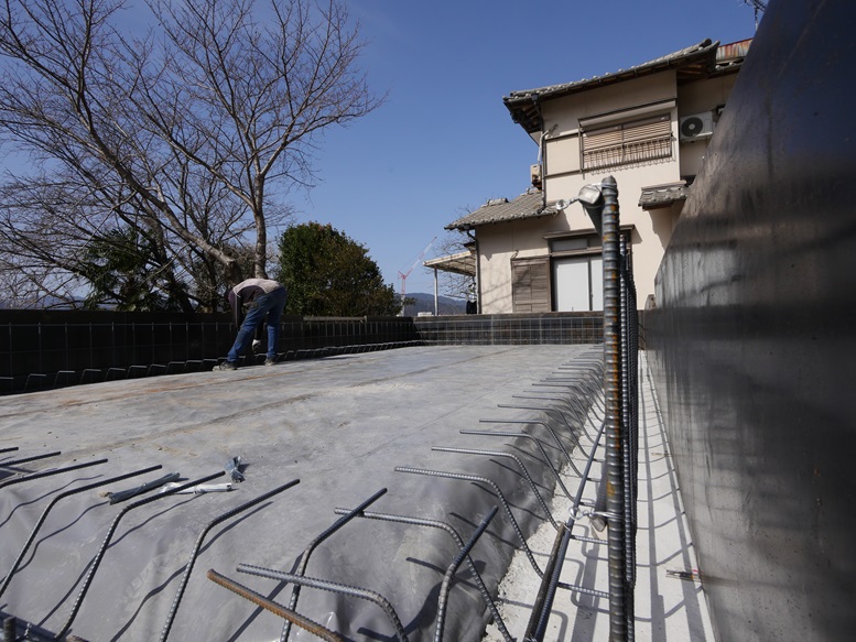 基礎工事は、捨てコンクリートの上に基礎パネルを設置し、基礎内部の配筋施工工事です。