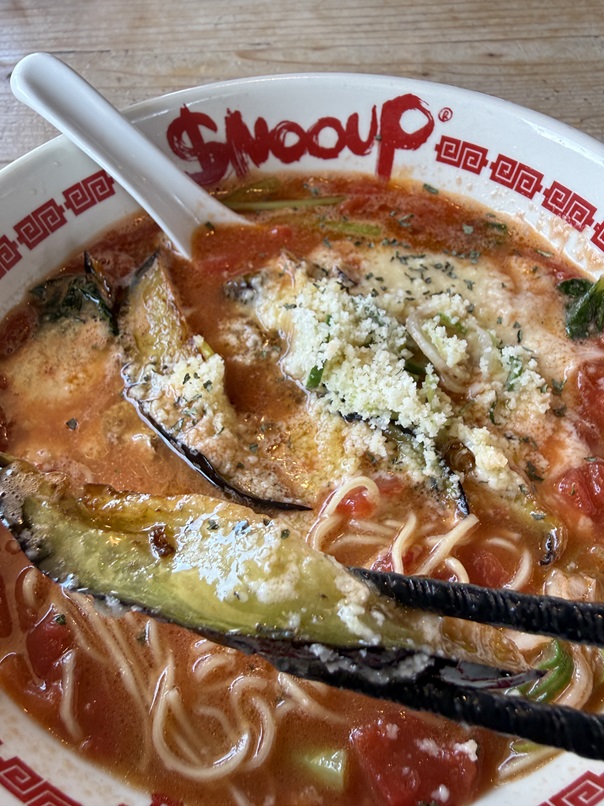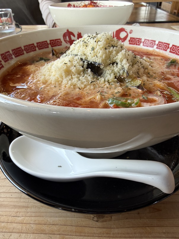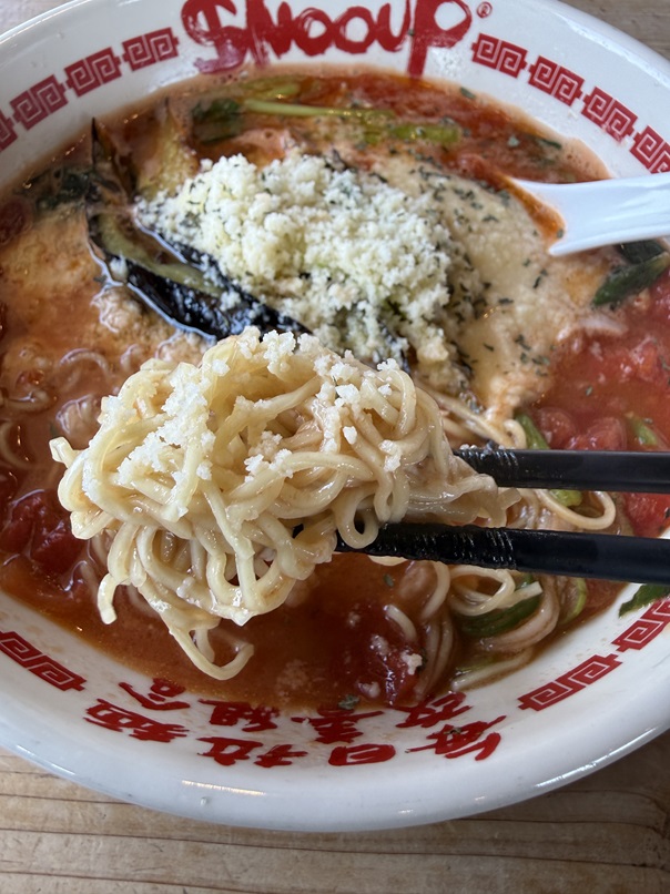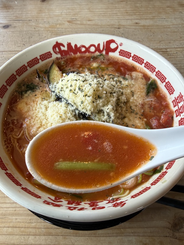日本のラーメンがイタリアのトマトでもうたまらん旨さで、思わずボーノと声が出ます(^^)