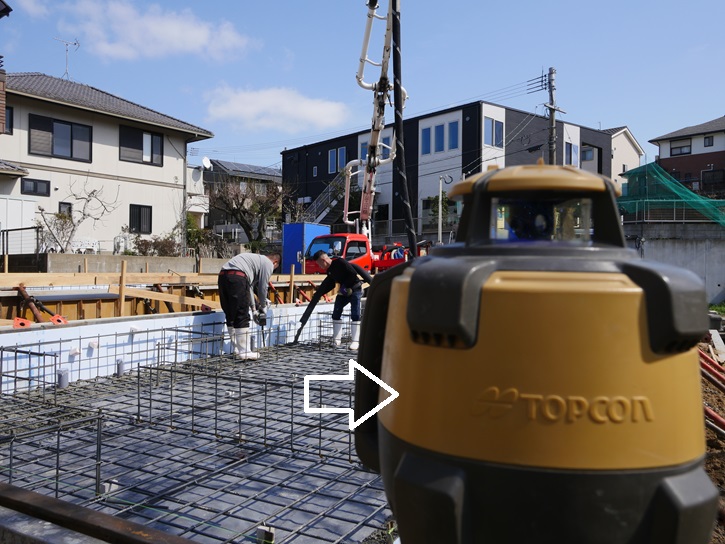 基礎コンクリートを施工する時、このレベル測定器で都度都度コンクリートのレベルを計測しながら作業します。