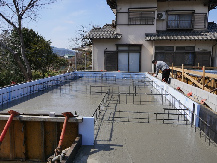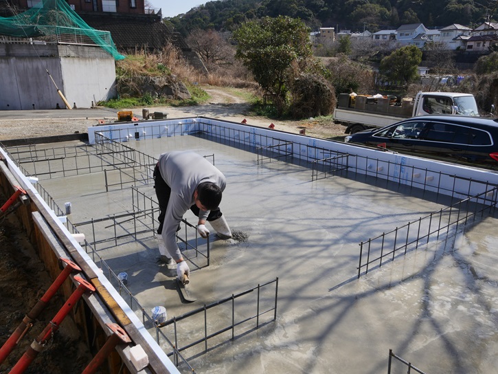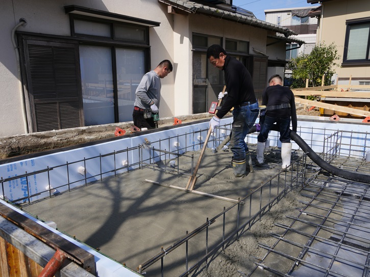 基礎工事 外断熱の基礎 ベタコンクリート打設 住み心地いい外断熱のプレミアムな建売住宅