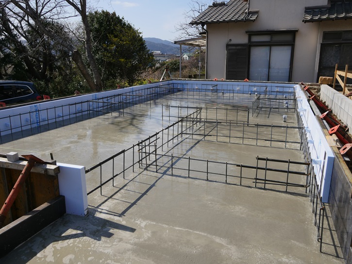 外断熱の基礎、ベタコンクリート打設工事完了です。