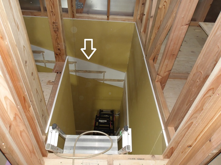 大工工事 石膏ボード 階段取り付け開始 那珂川市つながる家 注文住宅 外断熱工法