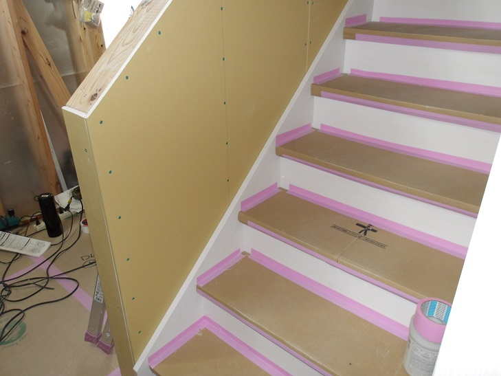 階段取り付け完了後、工事中のキズ汚れ防止の養生をしました。