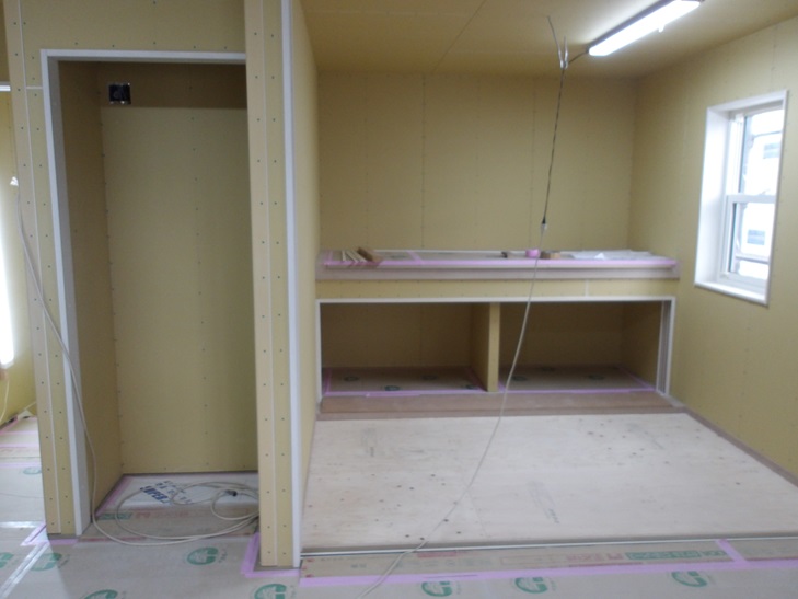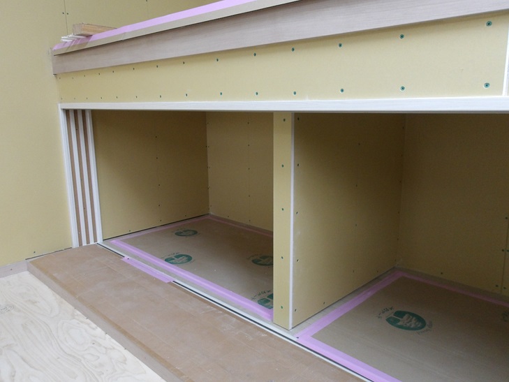リビング壁の石膏ボード張りです。