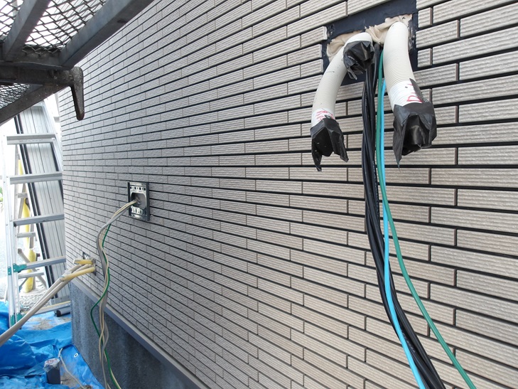 電気配線や給水管など外壁を貫通する部分は、タイルの施工はもちろん防水処理を万全にします。