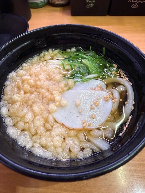 お寿司だけでお腹一杯になろうとするとやはり1,000円オーバーと普通の金額になるので、まずすうどんです。