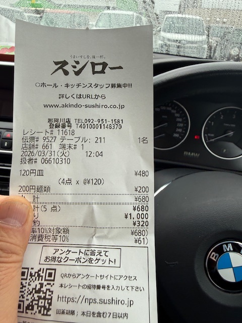 スシロー:那珂川市 安くて美味しくスシローを楽しむ(^^) 680円でお腹一杯のスシローランチ