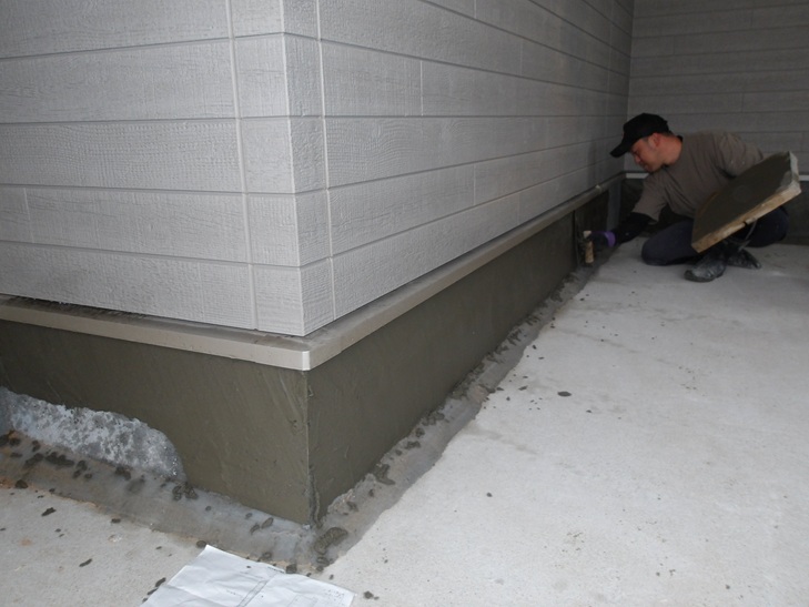 ビルトインガレージの基礎部分の仕上げモルタル塗りです。