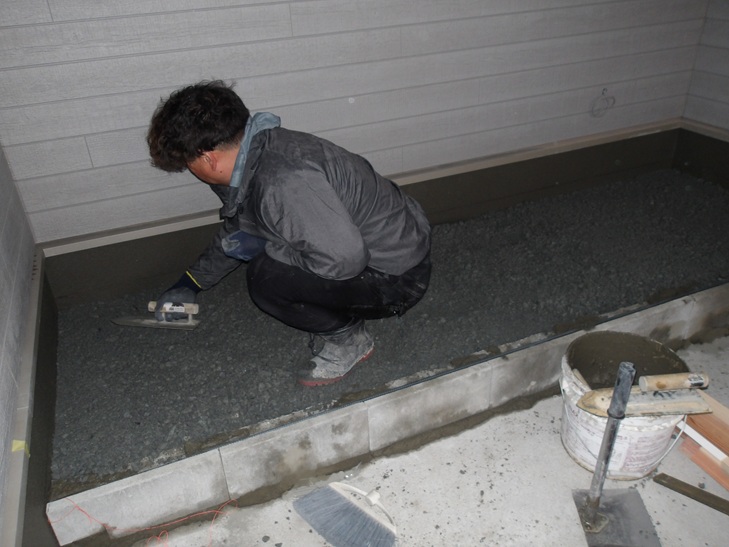 左官工事 ビルトインガレージ 玄関ステップ 那珂川市つながる家 注文住宅 福建住宅株式会社