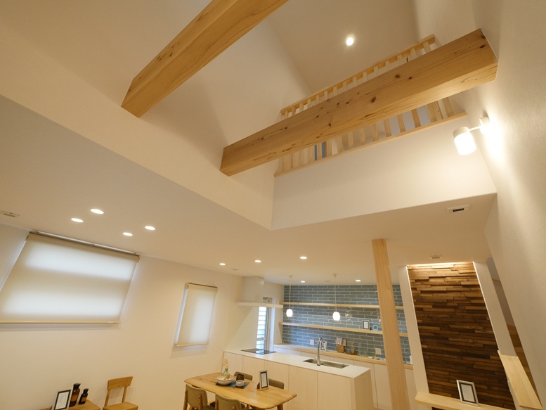 施工写真 吹き抜けのあるリビングダイニング 注文住宅 外断熱工法 福建住宅株式会社