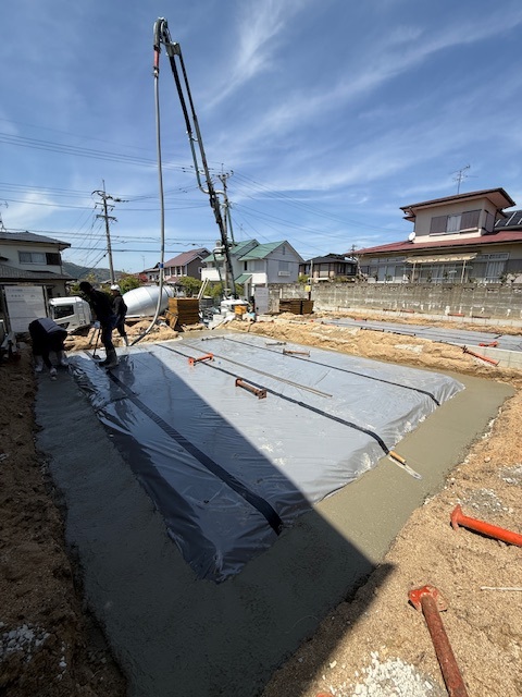 基礎工事 捨てコンクリート打設 賃貸だけど外断熱、那珂川市王塚台 福建住宅株式会社
