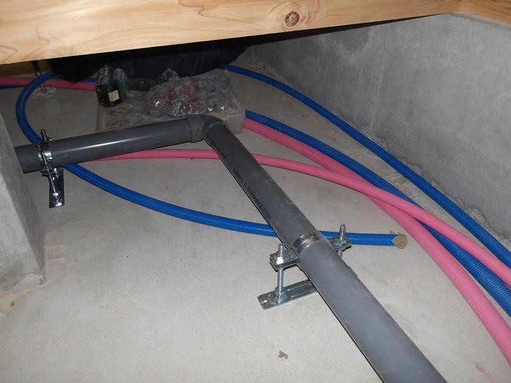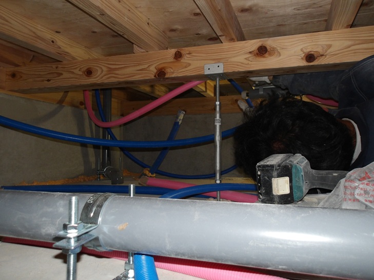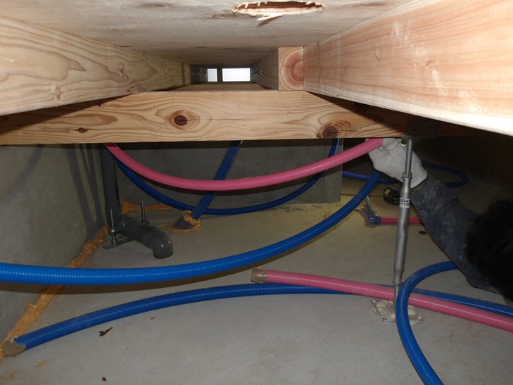 床下や壁の中に生活で必要不可欠な水道と下水道、給水管と排水管の設備配管工事です。
