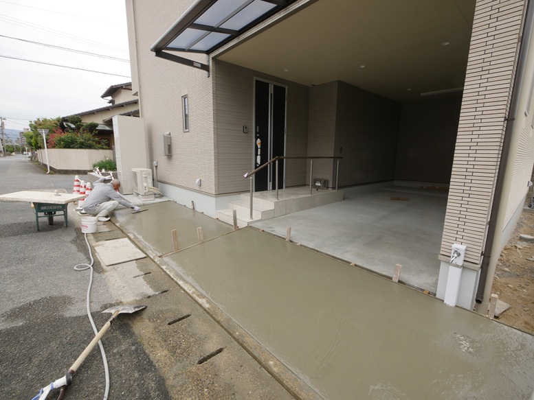 外構工事 車庫土間コンクリート 那珂川市つながる家 注文住宅 福建住宅株式会社